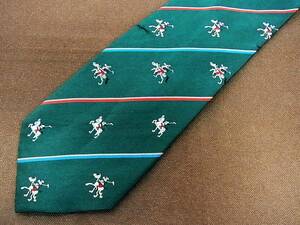 ディズニー Disney ブランド ネクタイ ゆうパケット 送料無料 ミッキーマウス 東京ディズニーランド グリーン キャラクター柄 日本製 良品 グッズ シルク 休日 中古 Tdl